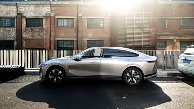 车身线条非常漂亮,我选的远山紫的颜色看上去很大气,流线型大灯很好看,纯电车车头造型很霸气。