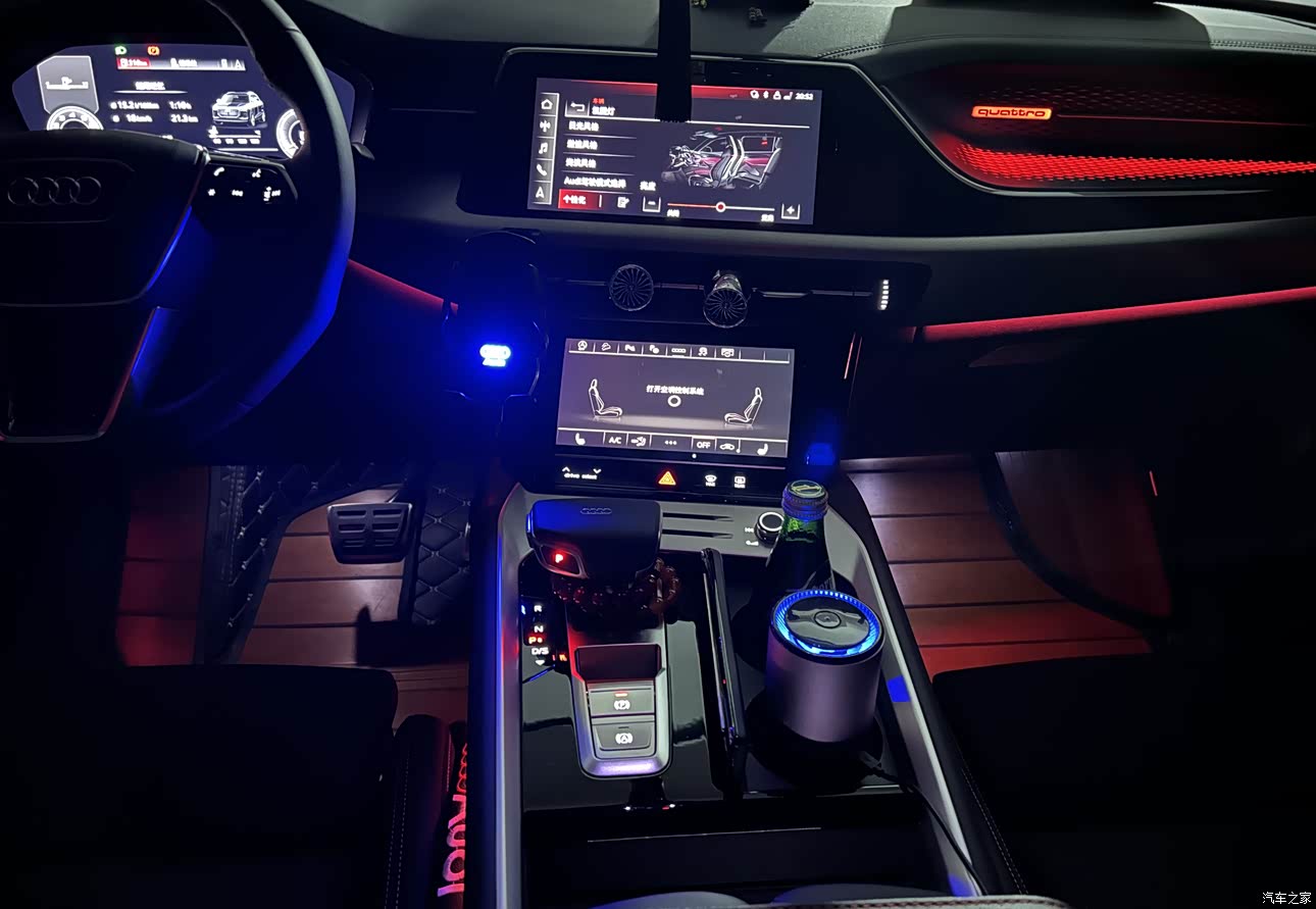 Q6延续了奥迪高端车一贯的设计风格,设计感强,虽然没有现在流行的带鱼屏,奥迪高端车型的三联屏足以。而且飞骑版本更是搭配了运动座椅,包裹性太好了。档把这里略显单调,自己更换了水晶档把,档次又提升了。