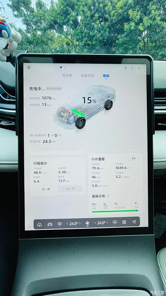 续航就一般了,可能跟开车习惯有关系,我自己的亏电油耗有点高,自己看图吧,充满电,纯电续航夏天基本 104 公里,我自己平时上下班一共 60 公里,有一段 20 公里的高速,所以跑下来基本油耗 4.5 左右吧,当然有时候懒,没去充电,一直用油,油耗就高了,还有就是充电时间,感觉快充有点慢,标称 30 分钟充满,最高 38kw,但实测最高就 30,而且维持不了多久,普遍是 25-27,充电到 50%,就降下来了,所以快充充到 90% 基本要 40-50 分钟