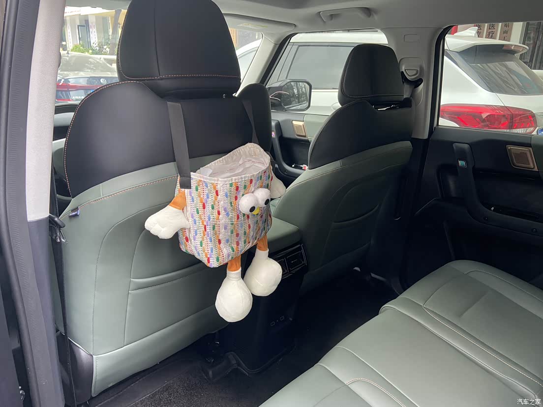 内饰上有白色和绿色,还是喜欢黑绿配色,比较耐看,前排座椅包裹性很好,头枕部分也比较合理,同事说比他的a4座椅舒服,不过该说不说,后排座椅如果能稍微可以调整一下角度就可以了,长时间乘坐会有点累。国产的内饰目前确实做的还是不错的。