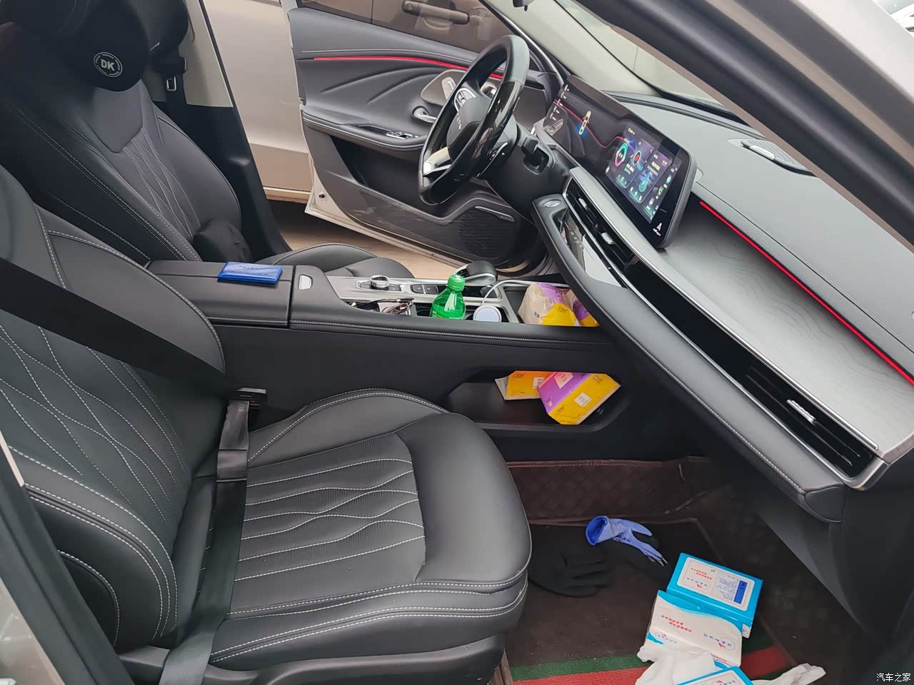 内饰必须是满分,这辆车的内饰真就不像是这个价位段的,看看同价位的车的内饰,比如卖的活的比亚迪,跟他内饰也没法比,很多地方采用黑色的木质纹路,跟座椅还有其他地方形成统一的设计风格,看着很舒服,有高级感,晚上氛围灯一开也很有赛博感