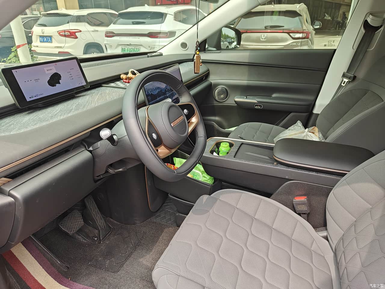 我选择的内饰是乌金黑,两种颜色搭配,更显得高级,座椅是真皮座椅的,质感非常好,包裹感比较强,主驾空调出风口比副驾的多两个,为啥不搞成一样的呢?空调调节风向,需要点击屏幕,比较有科技感!朋友坐我车,都说新车怎么没有啥味道呢,我说零甲醛车,他们都夸从未见过,也没有听过!安全永远是最大的豪华!!!!