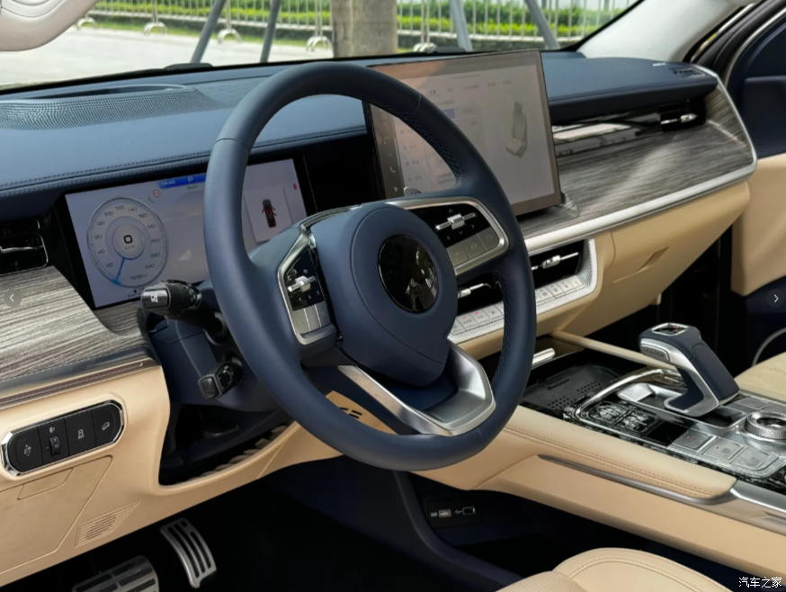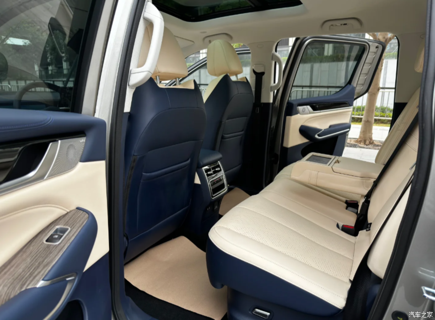 座椅缝隙很精致,而且还是真皮材质,前排有通风加热按摩,后排也给到了通风加热的待遇,就连扬声器都是品牌音响,规格很高了。
