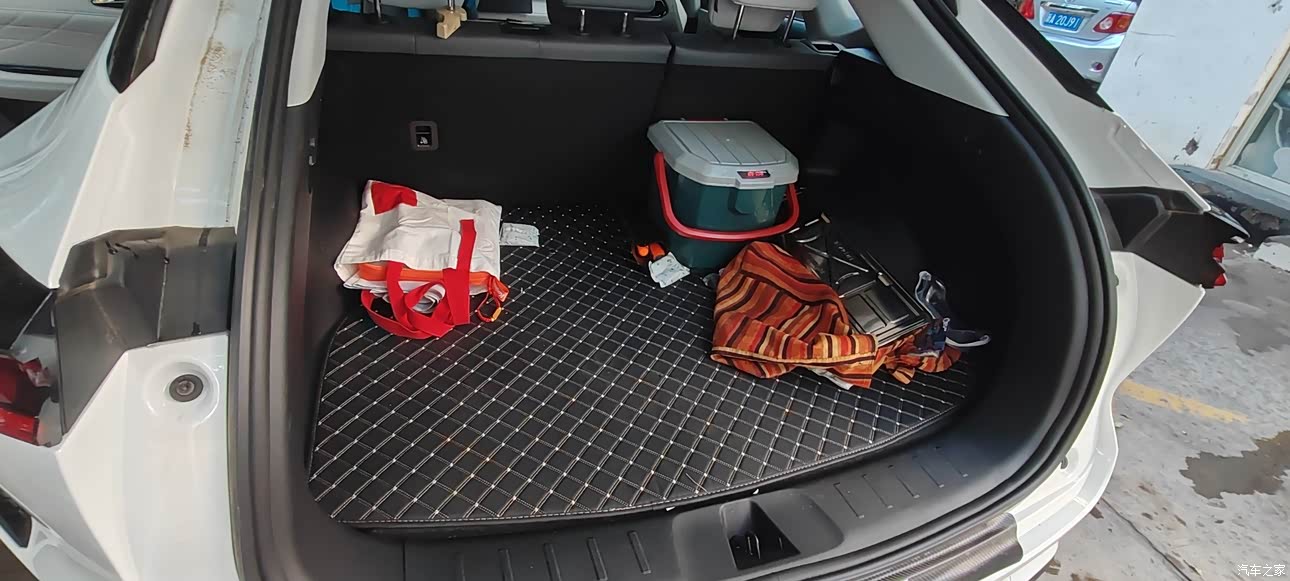 前排座椅放到最后也不影响二排乘客的空间。后备箱的空间也很充足