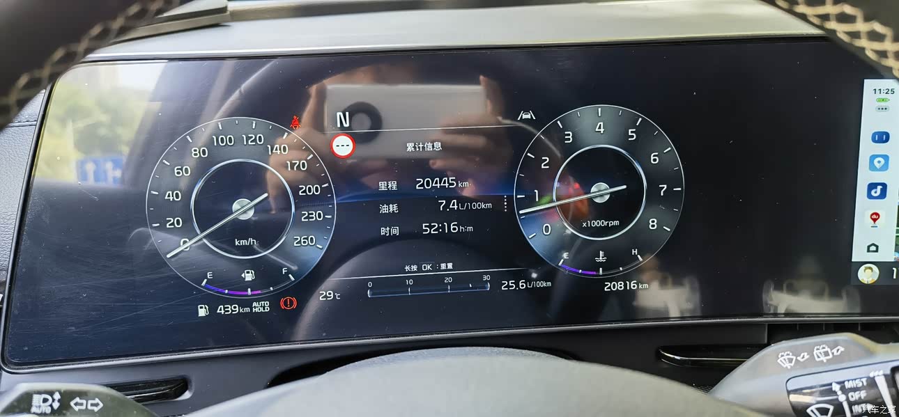 今年国庆跑高速多,大概跑了2100公里,油费是1400元,现在已经有21426公里,全程24度空调,表显油耗7.4,现在加95,我没有特别去测油耗多少,大概百公里油耗是0.65-0.68元。 城郊油耗:我从城区返回30公里外乡镇上班,都是比较好的二级路,下车时拍的加油后油耗是6.6L,33公里行驶油耗5.8L,天气比较凉,室外温度18度,没有开空调。 如果是开回老家那种盘山路十八弯的,那油耗一下子就串串了,我记得清明节那会就是开到了11个油,我想在市区开应该也是,走走停停的油耗感人。 高速油耗:上高速我基本上都是110左右,油耗是6.8到7.5之间。如果110左右油耗是6.8,有次定速巡航82,开了50公里高速,表显6.4这样,如果速度快一些就费油了,基本上是7.8个往上了。