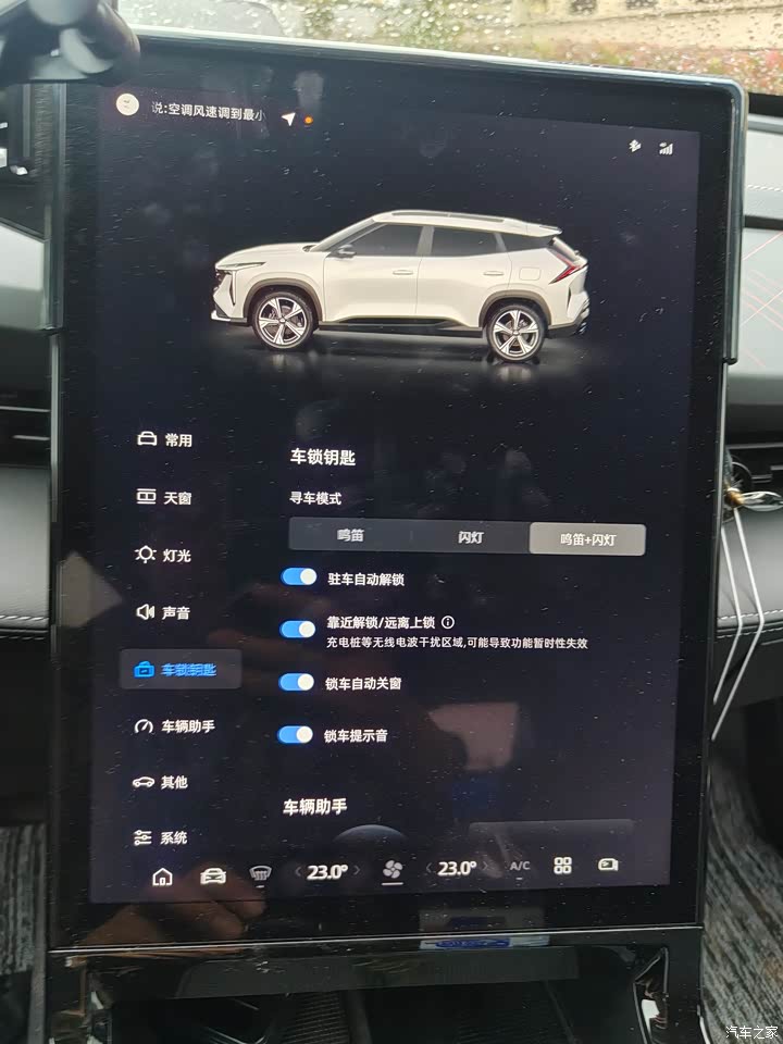 实体按键太少了,比如后视镜折叠和调节都需要在中控屏完成,不太方便。然后空调明明是单区的,中控屏确有双区空调的两个温度显示,完全可以把中控屏上的温度显示只保留一个,另外的地方给添加几个可以自定义的虚拟按键!
