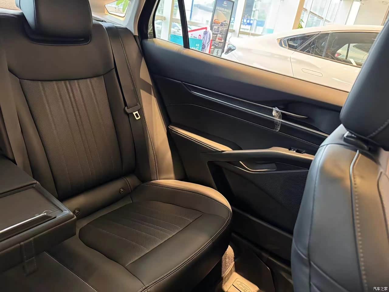 内饰的话我看的是纯黑的,整体看过去还是比较简单的,黑色的座椅加了点红色的缝线,整体还是比较年轻化,刚试驾的时候还是有些许的味道,不过还是要套个座椅套比较好呢。