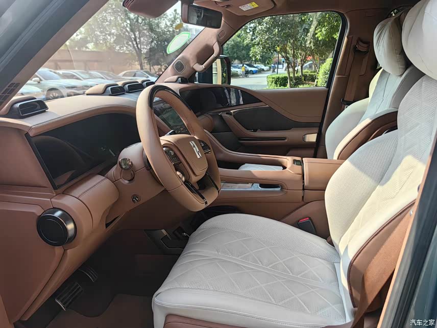 内饰做工非常豪华,很有质感,全车没有任何一处有塑料感,皮质的手感也都非常舒服,非常建议国产豪华品牌学习。设计整体也还算合格,就是这个出风口有点突兀,还不能手动开关和调整方向,这点很扣分。内饰的颜色有橙色和这个灰粽,当时看上的就是这个灰棕的颜色,很高级。全车四个座椅标配座椅通风加热和按摩,舒适性拉满了。