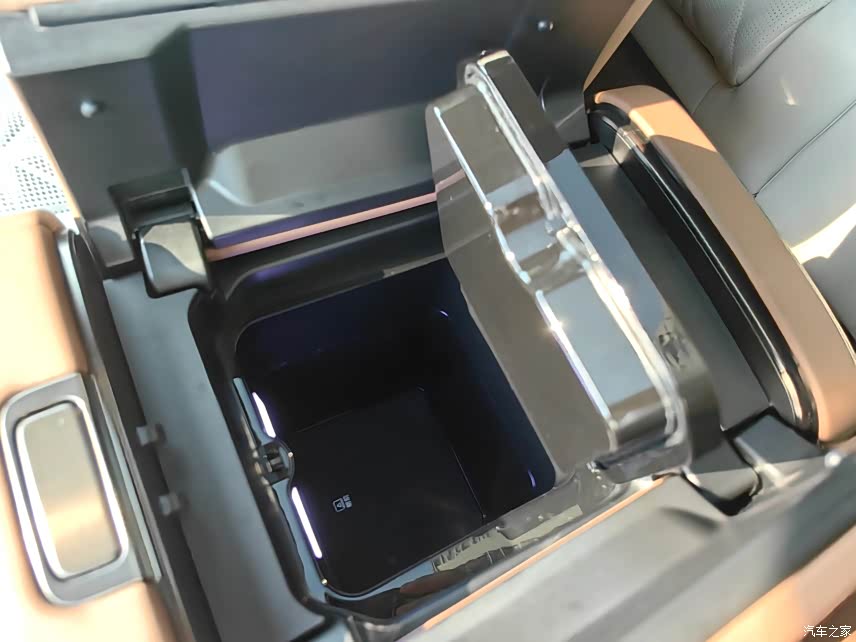 非常实用的豪华车标配冷暖箱,就是这个位置有点尴尬,放在扶手箱的位置,牺牲了一部分储物空间。