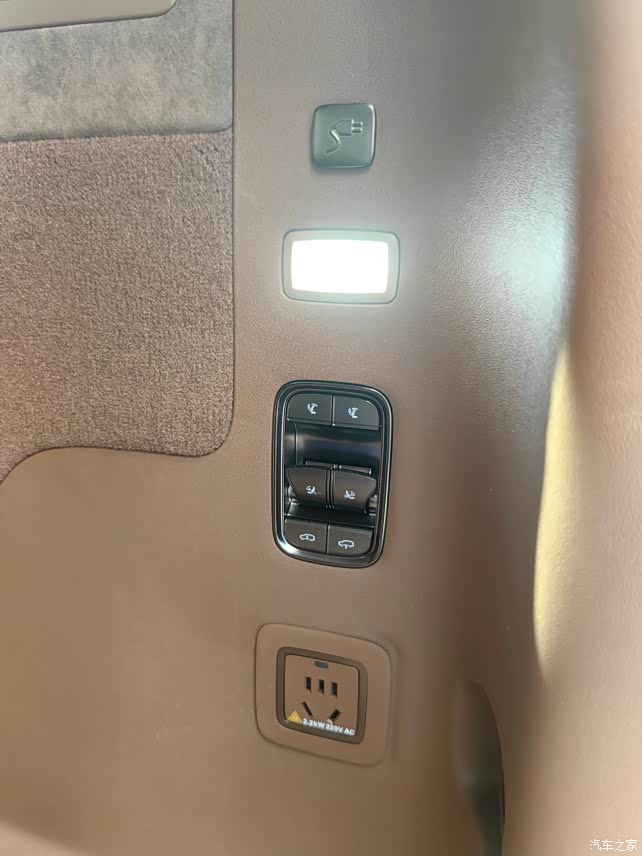 后排是可以一键放倒和升起的,非常方便。另外后面还有220V的插座,电车的优势,非常实用。