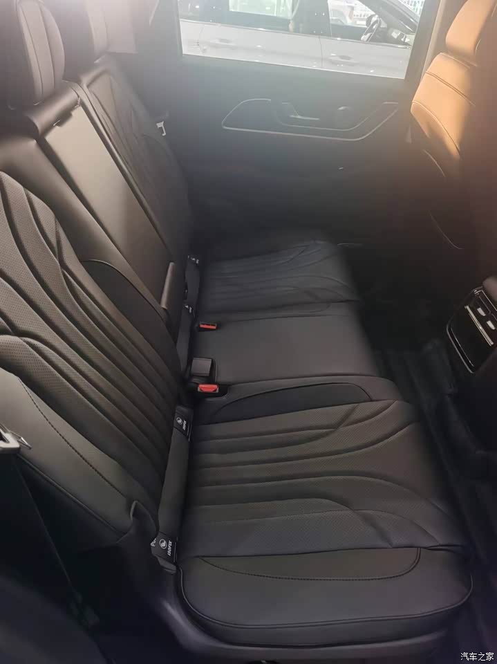 内饰采用了大量的高品质材料,中控台上下分层,台面顶部采用麂皮绒覆盖,下方有金属拉丝铝面板提升精致度,中央扶手和门板扶手等与身体接触部分是仿皮材质,触感舒适。 - 座椅舒适性好:座椅填充物厚实有弹性,与身体贴合度较高,主驾配备了 6 向调节+4 向腰托调节,中高配车型还具备 3 档通风与加热和 10 点式气袋按摩功能。女王副驾更是拥有 10 点按摩,坐垫腿托最大开启角度可达 128°,坐垫靠背最大开启角度高达 125°,能够为乘客提供舒适的乘坐体验。虽然车辆配备了主动降噪系统,但在高速行驶时,胎噪和风噪仍然比较明显,影响了车内的静谧性。