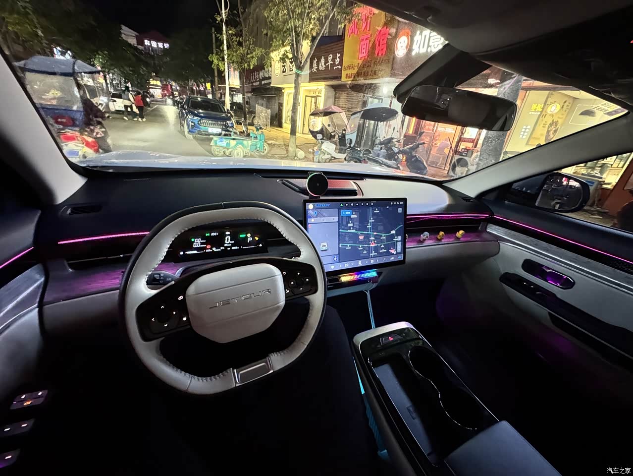 内饰设计很好,怀挡很方便,悬浮岛台下面空间很大,无线充电也很方便,全车设计比较简约,大灯控制也集成在大屏幕里面控制,电子手刹设计在了方向盘左侧,系好安全带出发,也会自动释放电子手刹,用起来也是非常方便的,扶手箱的空间也比较大,里面还设计有出风口,放一些饮品在里面还能起到保温效果,悬浮岛台的杯架也是高低台设计,不管是放大瓶饮料还是咖啡都比较稳妥。