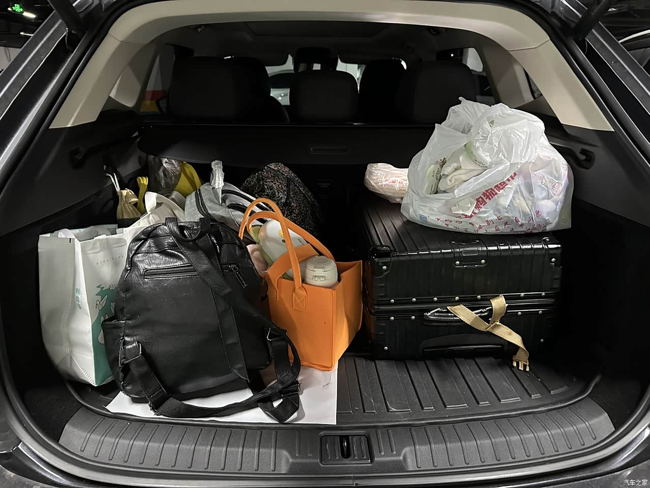 车内空间宽敞(我172cm 65kg),2800的轴距,后排空间真的喜人,后备箱空间也很大,塞了一个大行李箱后还有这么宽才到车门。