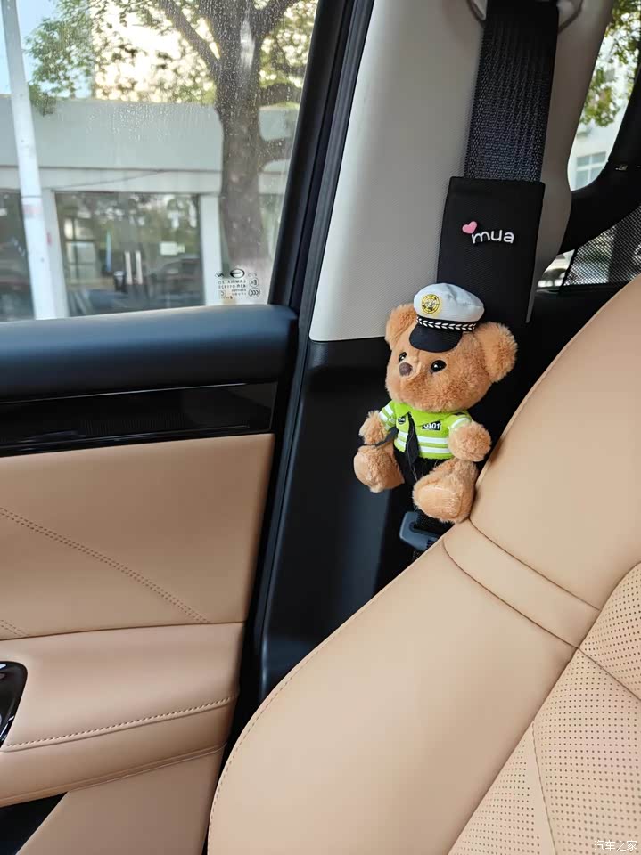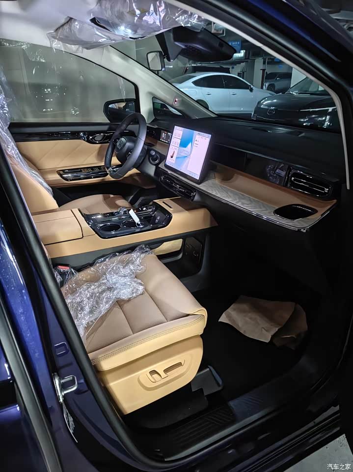 我选择的是棕色内饰,也是我老婆最喜欢的颜色,感觉比较高级,内饰用料也很不错,很多地方都是用的皮质的,二排还有小桌板,摸的手感也很好的,肉眼可见的地方都感觉对得起这个价格了。