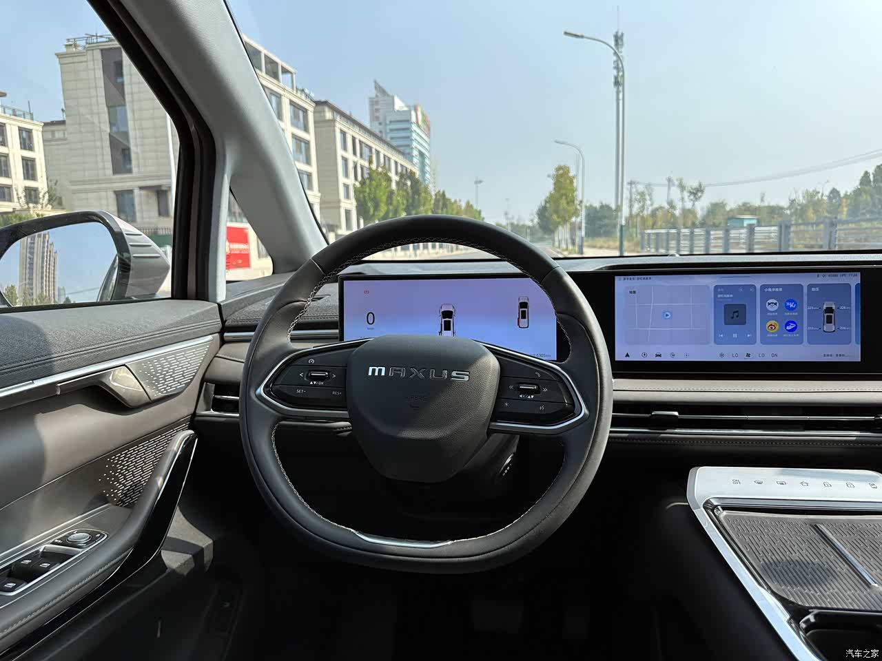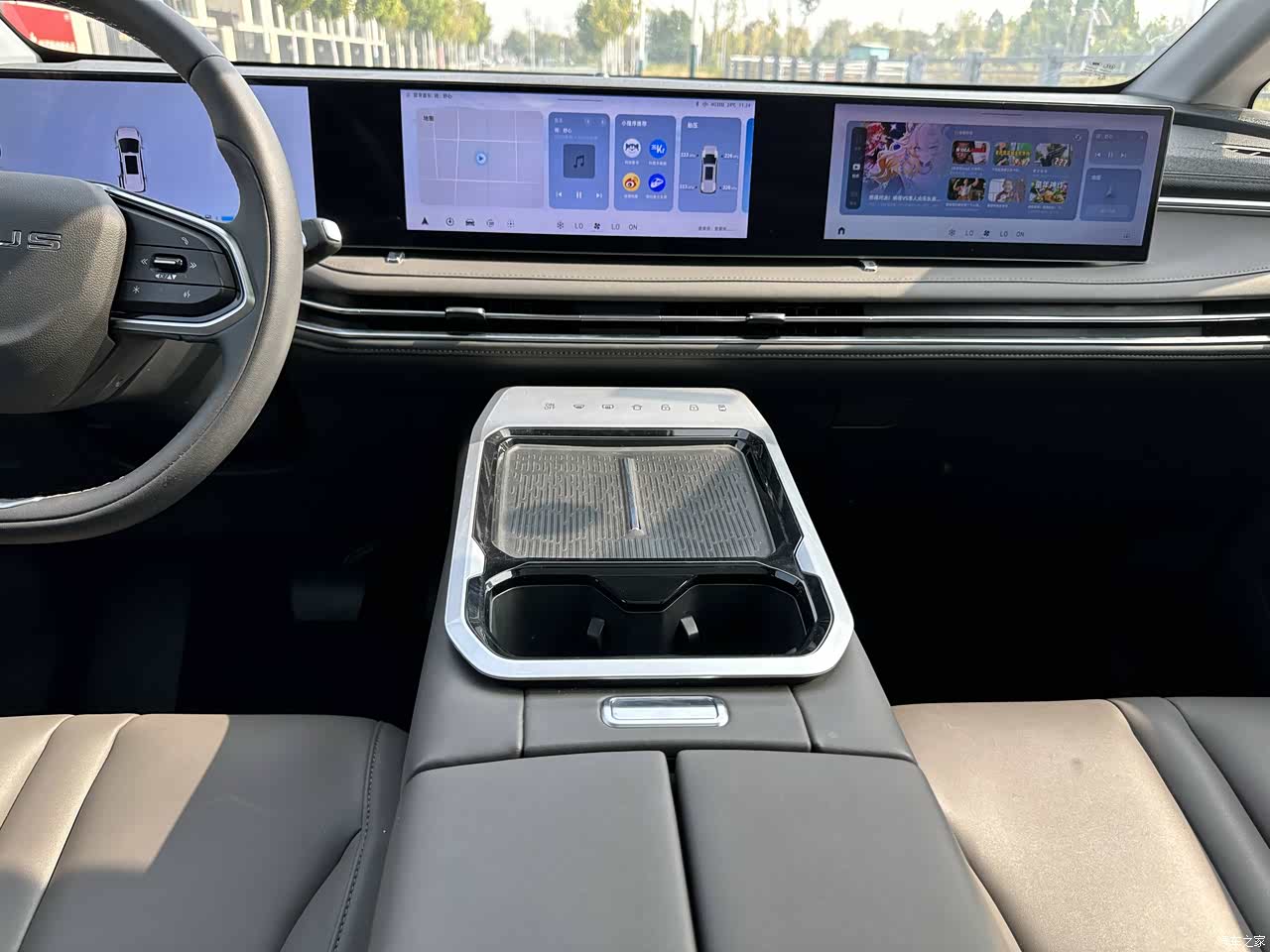 内部空间设计的很得当,可以开启全景天窗,空气流通一步到位,并且前面是多层隔音玻璃,所以整体的隔音情况也是很优秀的,中控以及副驾驶的娱乐屏也是很加分的设计,而且屏幕尺寸大小是一样的,看起来非常的整齐。