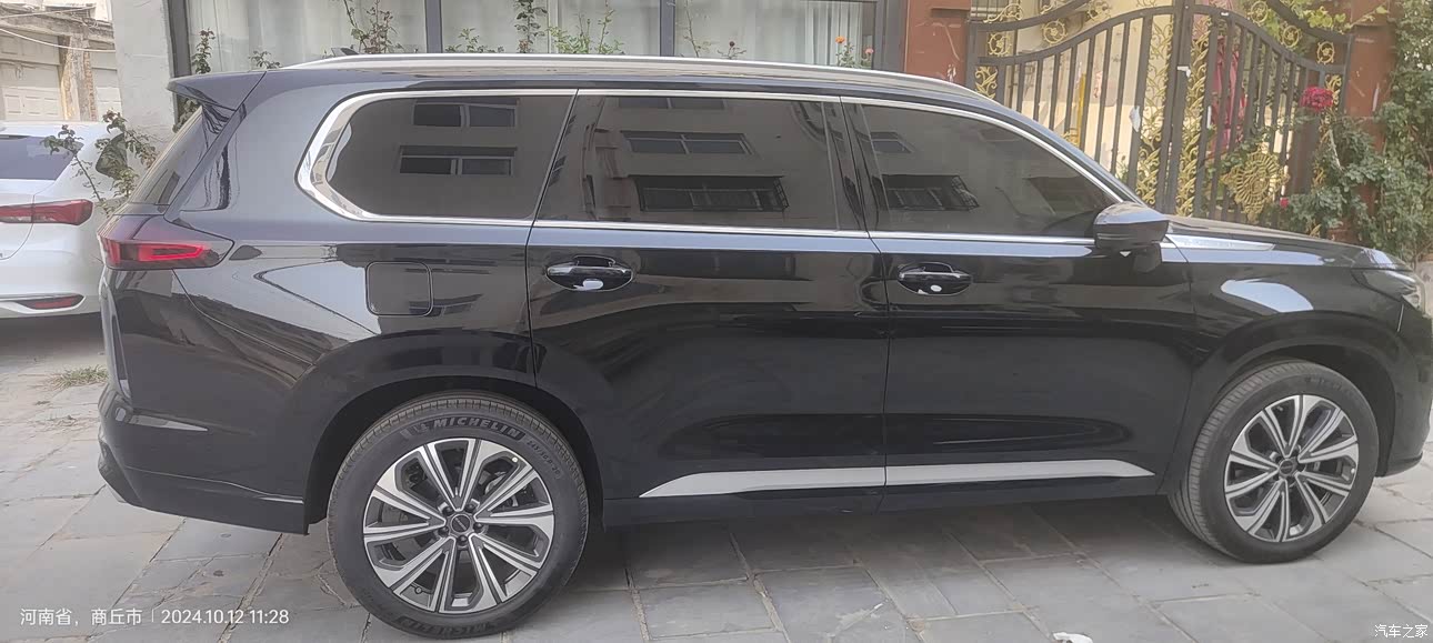 腰线设计流畅顺柔,车身整体轮廓霸气威武,轮毂二十寸的,并配置的是米其林轮胎,城市SUV的舒适性、越野性能都很到位。