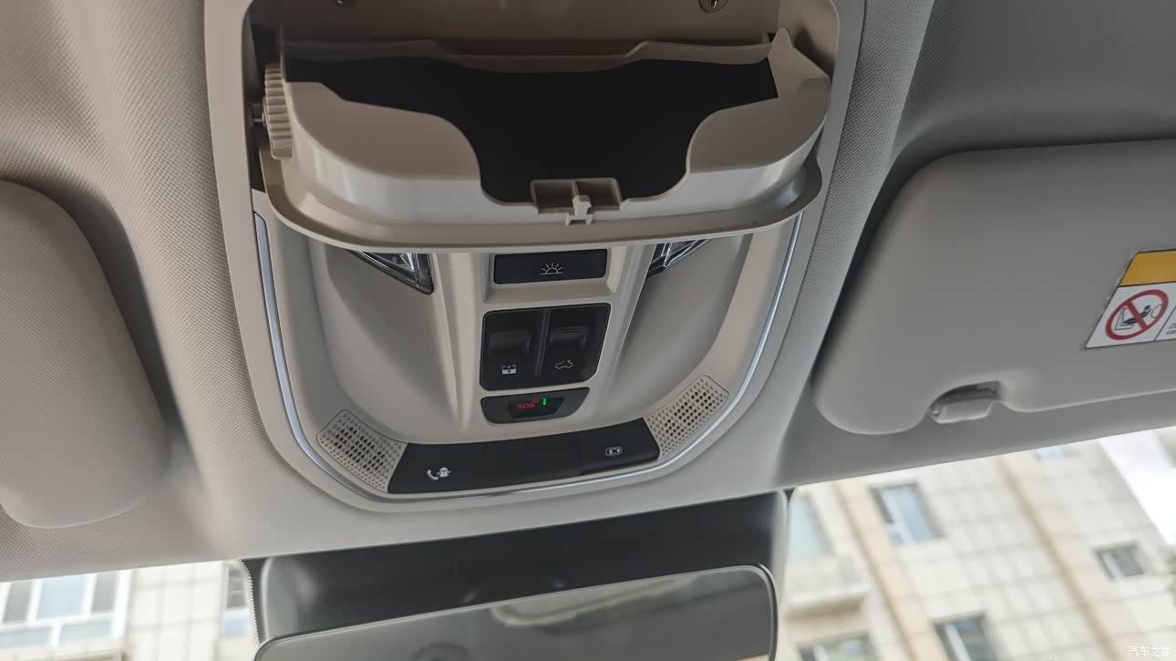后视镜上方设置了墨镜盒,非常的人性化,再也不用担心墨镜放的找不到了。中控区域取消了大部分的实体按键,看起来非常的简约时尚,这一点我还是非常喜欢的。取而代之的就是拥有了更大的扶手箱,以及设置了两个杯架和手机50W无限快充,再也不用担心长途出去玩手机没有电用了,附加膝盖处增加了可以负载三公斤的小挂钩,给朋友家人带饭也不用担心撒到车上了。