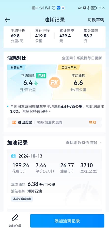 本人用车主要是通勤,上下班,长沙市内河东到河西来回跑,路况一般般,有时候比较堵,最开始的油耗9.7,通过磨合期后油耗喜人,和我以前的虎三差不多,要知道这车可比虎三大多了,也重多了,这车堵车就比较费油了,估计至少得8个,开空调油耗要高0.8的样子,高速的话110最省油,平均估计也就6.2,这个车不能急懆,要平稳点管好自己的右脚,不然随随便便8个起步。