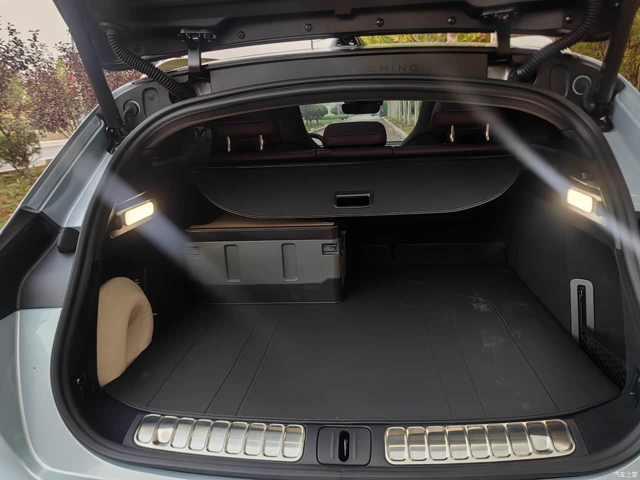 电尾门开启角度大,左右各有一个承重2.5KG的隐藏式挂钩,应该是露营利器,可惜我不是户外爱好者
