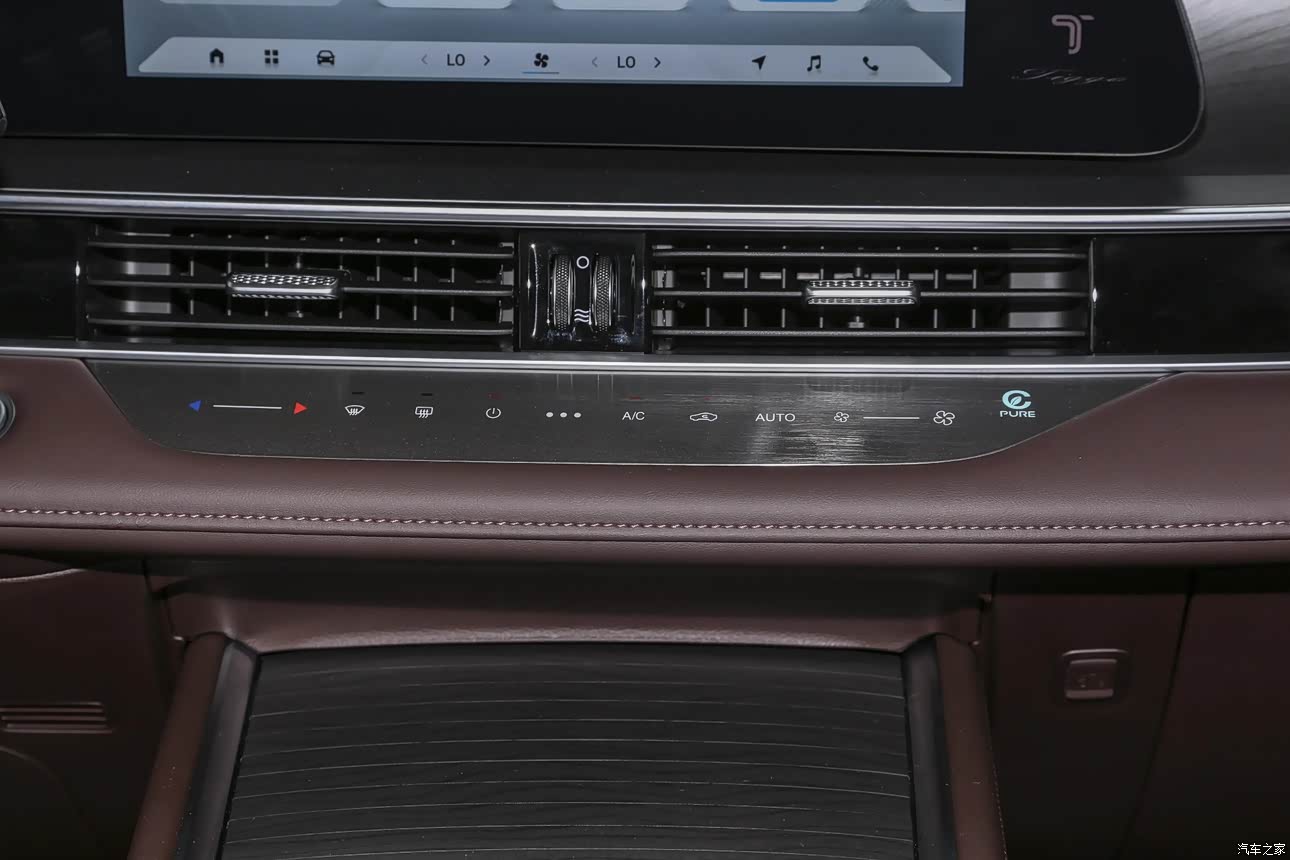 车子内饰是棕色和黑色双拼,晓得很大气! 空调的可触控面板点赞,省去了在屏幕上戳的烦恼,虽然也可以语音控制!
