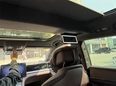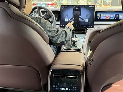 在选材方面肯定都是特别高端了,全软皮包裹还有仿实木材质可以明显感觉出它在材料控制上用的也到位,而且设计这块很简洁,这样最大的好处就是耐看嘛,这就是现在比较流行的简约风嘛,三块大屏粗看很有科技感,但实际用起来副驾驶前边这块屏幕比较鸡肋,用处不大,就当摆设吧哈哈哈。