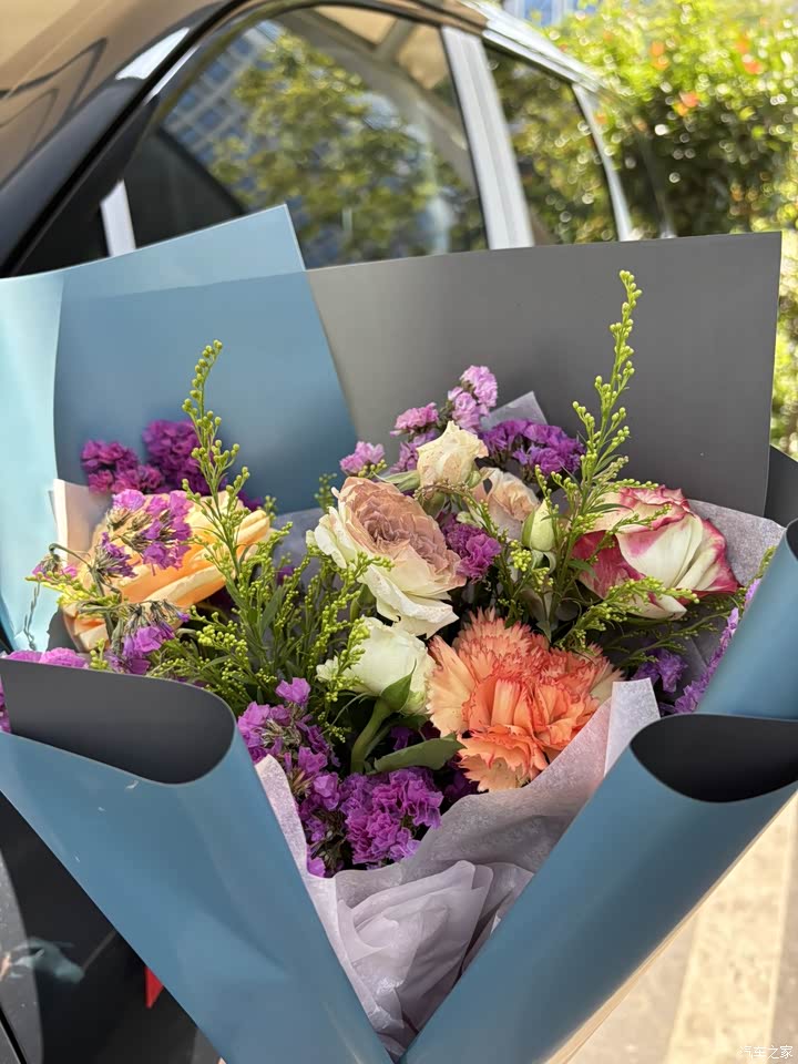 提车还有花花送哦,仪式感拉满啦,内饰选的星桓紫,我非常喜欢这个颜色,很高级又耐脏,第二排座位简直太舒服了,材质也很舒服,最喜欢的还要属踩板,因为是平的,容易搞卫生