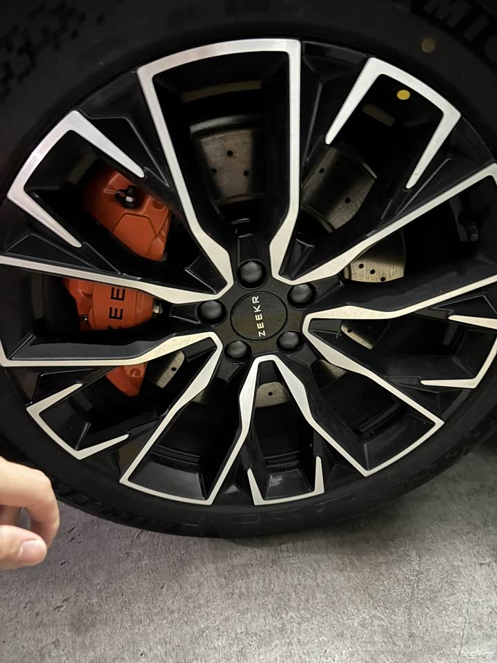 加速可以很快远远超出我之前的驾驶感受,以前开的小轿车,7X刚上手有点不习惯,感觉SUV重心有点高,而且整车很重,急停急起有点晃,习惯了几天感觉还好了。这里的橙色卡钳也很帅,哈哈。