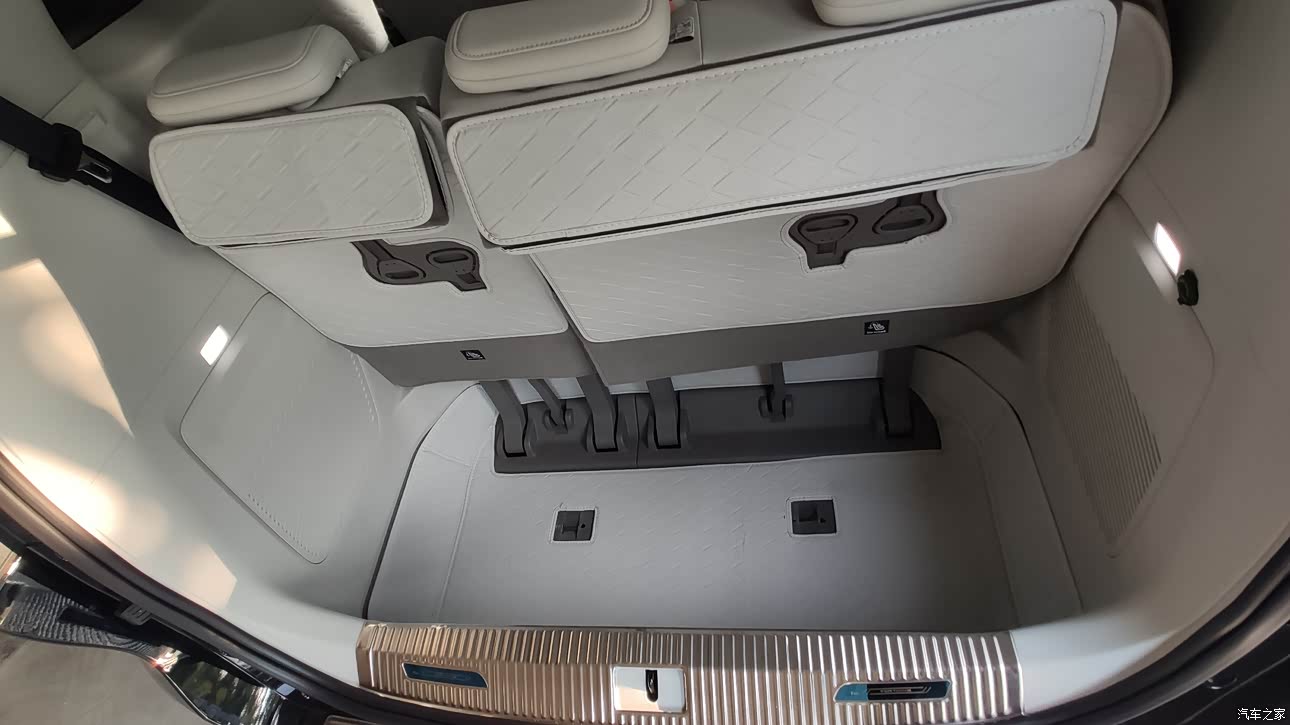 这么大尺寸的车架,根本不用怀疑内部空间,中间第二排经常性是大四座。第三排收起后尾部就是一平整空间,可以放大件东西,第三排竖起来后,下沉的尾部空间也足够满足日常使用