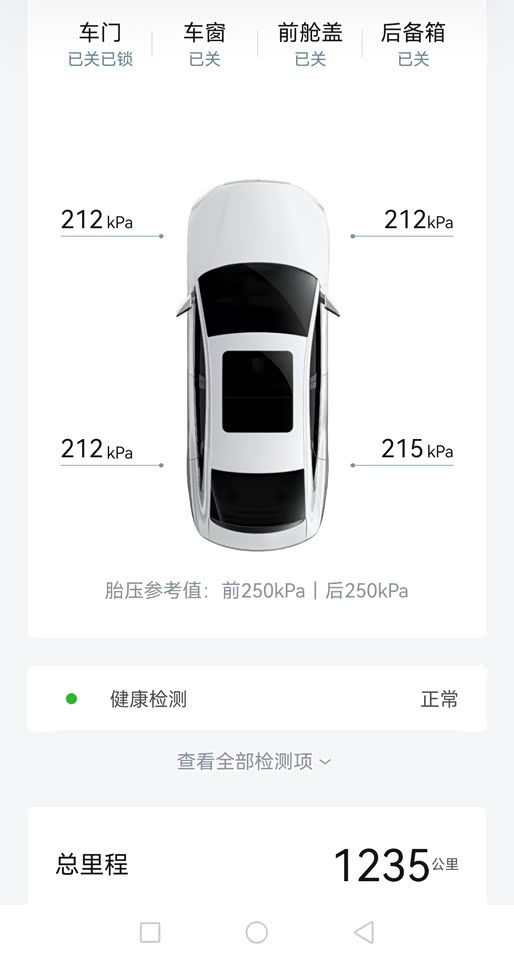 手机App可以查看操控一切,功能齐全,不需要顶配版车型才有,中配也有了。VW牌的胎压监测都舍不得显示数字,还是比亚迪厚道。 可以查看电量能耗,远程启动开空调,车辆定位。更重要的可以手机移动挪车出库位,有时候开车门上不去,很好用。