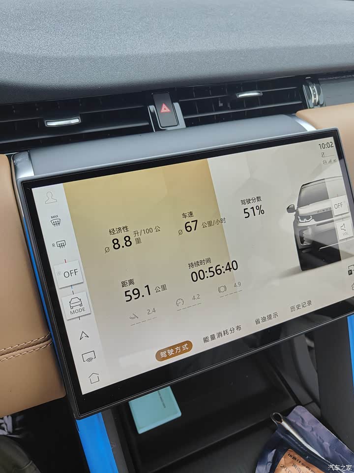 提车那天,成都晚高峰,加大概50公里的高速,跑了8.8个油,第二天上户和上牌照,走的快速路,是10.7个,都是开着空调的。不开空调的话应该要少个0.5-0.6吧。