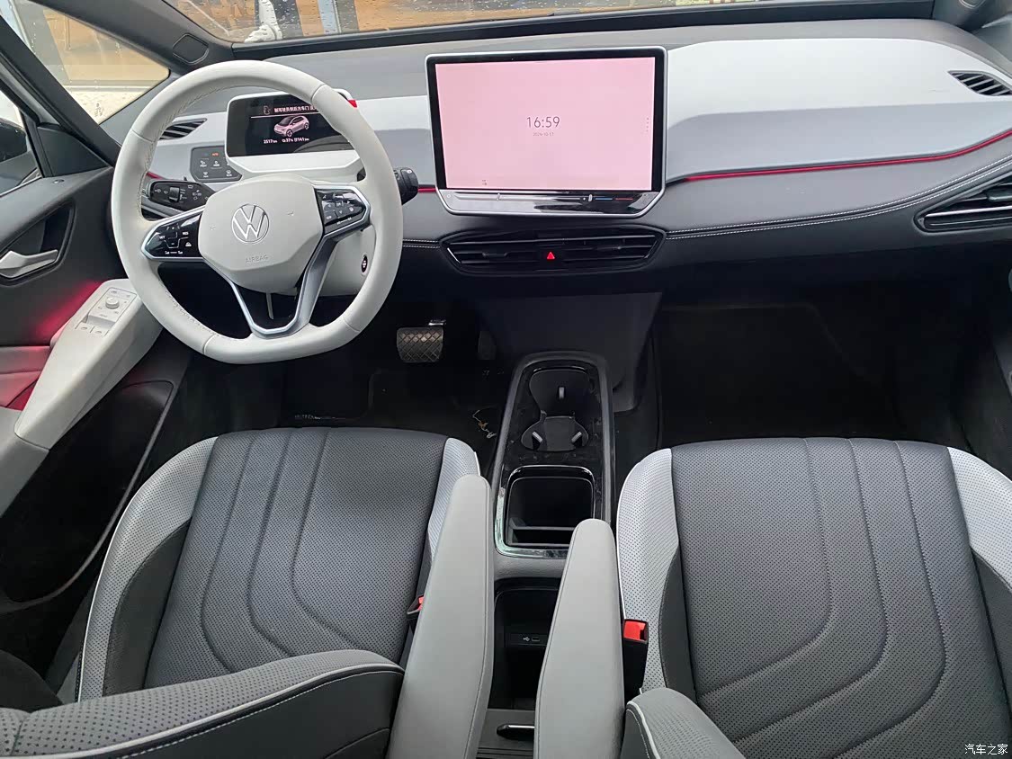 内饰比较简单,聪明款的ID.3中控大屏比24款更加大,显示清晰,操作流畅,搭载的车机系统功能丰富,车内的用料和做工都比较精良,座椅采用皮 / 织物混搭材质,坐感舒适,包裹性良好。中控台和车门内侧等部位采用了软性材质和钢琴烤漆面板等,质感不错,提升了车内的整体档次。车内的氛围灯有 30 色可选,能够营造出不同的车内氛围,增加了驾驶的乐趣。