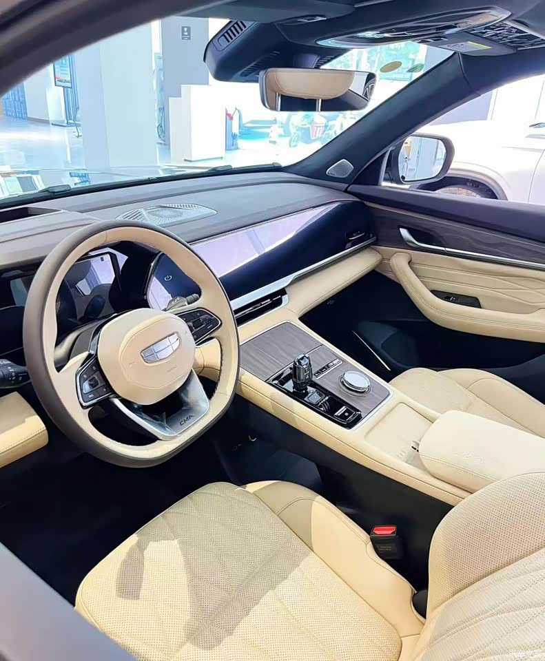 星越L的内饰做工很好,车里面可以说经常接触的地方都做了软包,摸起来手感柔软舒适。中控设计的也非常的简约尊贵,大屏看上去科技感十足。车里空气还行,没有任何异味,这一点点个赞。
