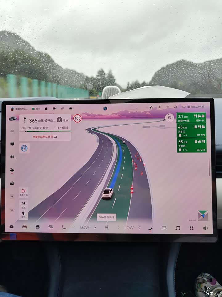 这一次国庆小长假我对我的007做了一个长途测试,看看是不是像很多人说的电车跑高速很辛苦。 本次行程总共906公里,根据我对007的了解,只需要在中途补能一次便可以完成这次的行程了,由于是长假期间,避免高速排队所以我规划了下高速补能,同时人也可以吃午饭补能。 事实证明我的选择是正确的。在这里不但不排队,而且充电也可以达到120kw的速度。充了74度电,耗时44分钟。这个补能速度我还是挺满意的。 最终到达目的地的时候,车辆还剩45%的电。剩余续航里程还有294km。总里程914km,平均电耗13.8度。我觉得这样的表现还是非常不错的。