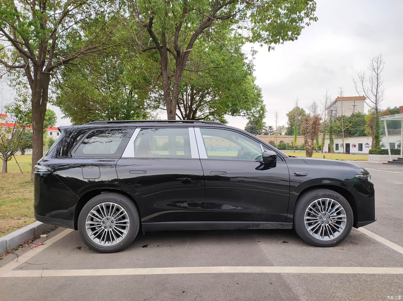 外观大气,我订购的是最低配的不加加装包的车型,外观方面除了没有贯穿式灯组和二十一寸的大轮毂,其他基本一致。最低配虽然是二十寸的轮毂但轮毂样式很好看,轮胎厚显得轮子也很大。