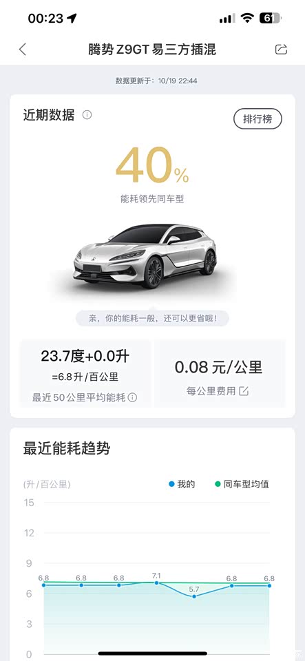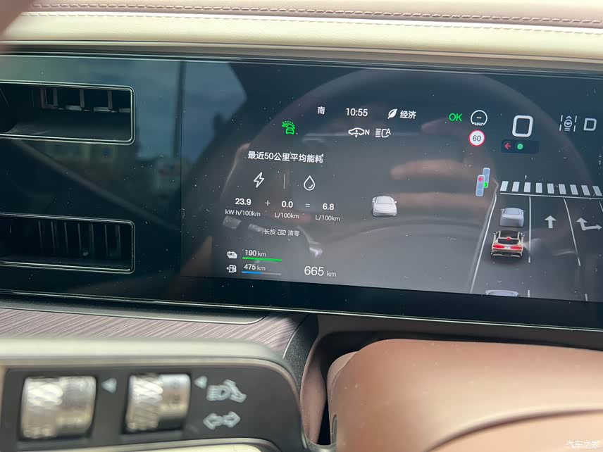 目前是秋天,纯电模式下,充满电后动态显示续航175km,22度环境下市区开车,实际里程消耗几乎是1:1的,表现非常好。 加满油的油表显示900km,总续航达到1000多公里,跑长途没有任何里程焦虑。