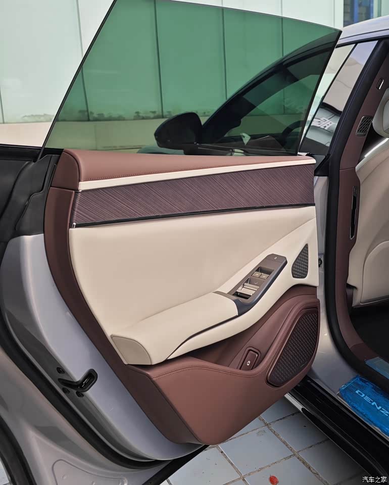内饰座椅、仪表台、车门、中央扶手箱表面都是真皮包裹,能摸到的地方全部是真皮。 车门全部双层夹胶玻璃。