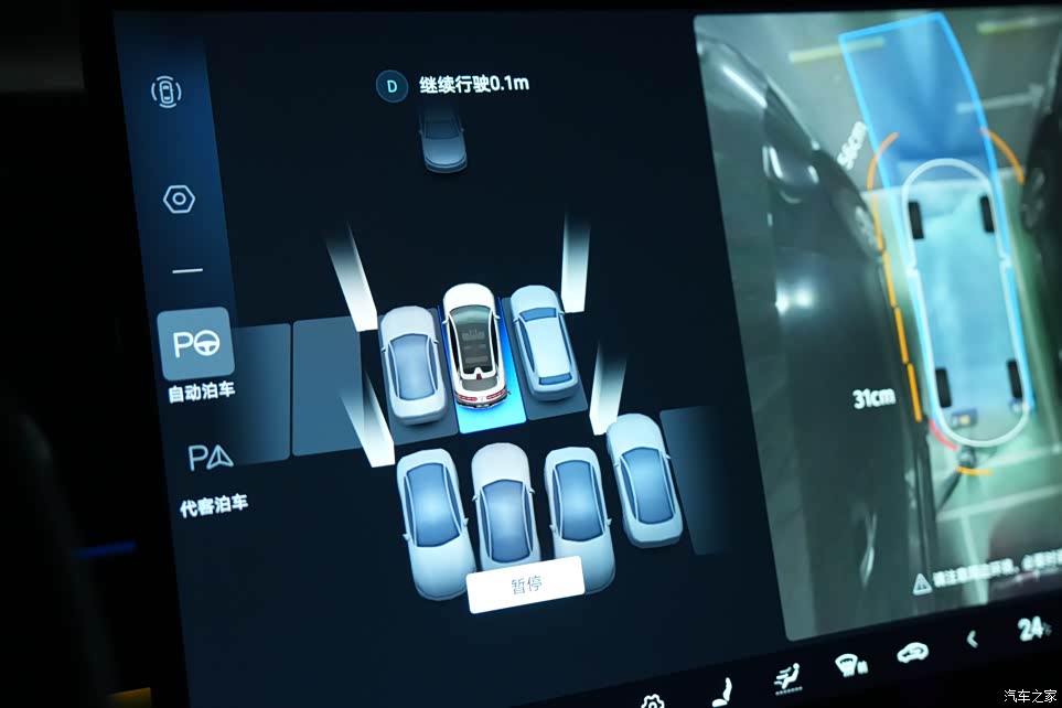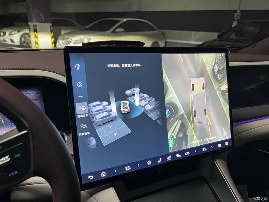 这台车拥有完全自动泊车的能力。无论是坐在车内自动泊车,还是代客泊车功能,都非常好用,停在车位内非常居中。 可以在断头路自动泊车,可以停在一些墙边角落车位,各种复杂车位都可以停。