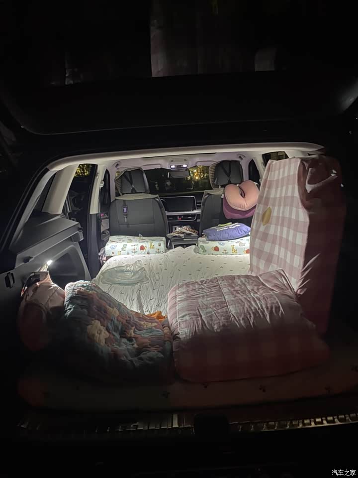 座椅放倒做床车,孩子大人随心所欲地折腾,舒适性十足。