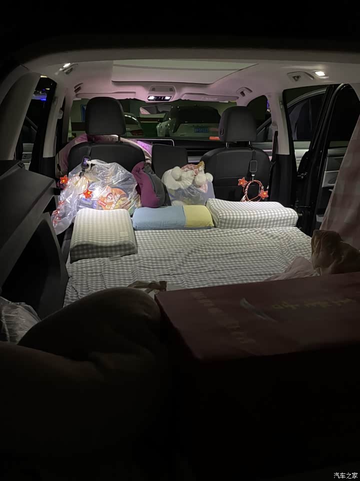 空间: 后排座椅放倒之后就是一间大床房,1.4米*2.2米的一张床,可以容纳一家四口睡觉。自驾游的时候停在哪里都可以睡。而且由于空间大的关系,舒适型很高,晕车的孩子也不晕车了,假期出去玩的时候,孩子都在后排放一个小桌板写作业。车内各种储物空间可以塞下茫茫多的东西。开这车出去旅游,几乎可以做到除了加油,其余全在车里解决。 外观:颜值没得说,即使一年半过去了,看起来依然威武霸气,气场强大。尤爱前后发光LOGO和贯穿式的车灯。 动力和行驶品质:动力储备充足,高速上跟车,超车都感觉信心十足。行驶起来四平八稳,开长途简直是一种享受。以前的车开个400公里就腰酸背痛,现在千八百公里感觉尽在眼前。