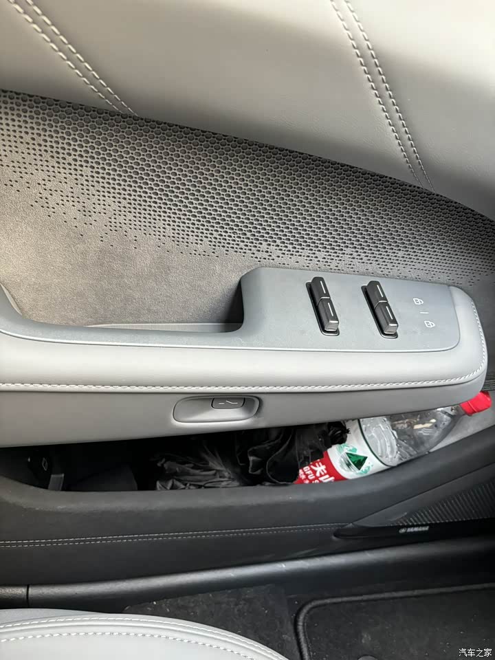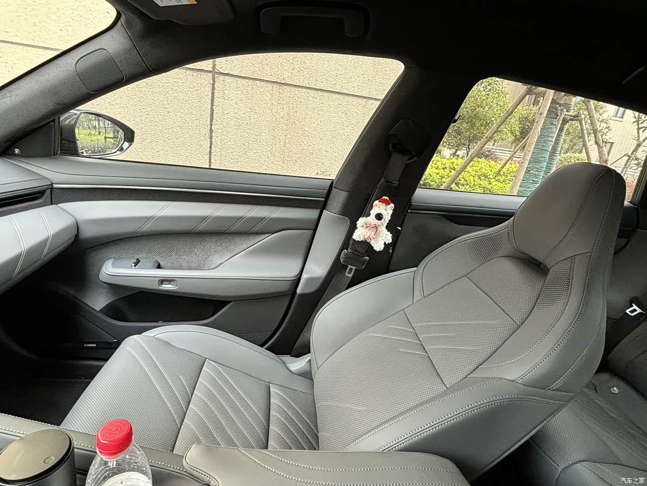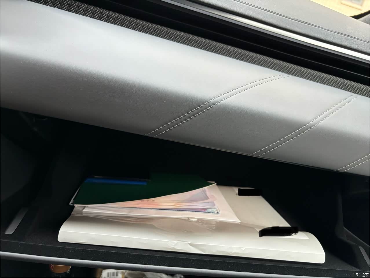本人身高172cm,体重77kg,前排座椅调到驾驶位置后,头部空间大概两拳,对自己来说空间绰绰有余。前排座椅为一体式的运动座椅,带有头枕音响,坐垫较为柔软,坐着挺舒服,前排座椅带有腿托和腰托,可电动调节,因此可以通过调节找到属于自己的舒适位置,不足的是转向时座椅侧向支撑略显匮乏。全车整体储物空间中规中矩,算是一个较为优秀的水平。左右侧门板里大概能放下四瓶矿泉水,屏幕后面自己买了一个储物槽,可以用来放放纸巾等小东西。扶手下面有一个很深的挖空,可以放很多东西,缺点就是可能会被座椅挡住一点,拿取需要把座椅后移一点。扶手箱的深度还是很深的,因此在平常使用时,买了一个隔板,下方放些不常用的东西。手套箱的空间也很不错,文件袋都能轻松装下。后排坐垫长度50.5cm,后排靠背支持前后角度电动调节,腿部空间三拳多,得益于轴距长的原因,腿部空间还是挺充足的。