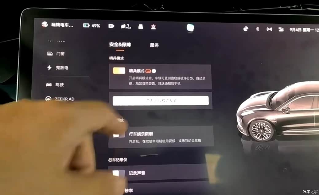 极氪001的座舱材质令人满意。座椅、门内饰板及仪表板等大面积采用皮革与 Alcantara 材质,手感高级柔软,动态和静态的质感是非常可以的。