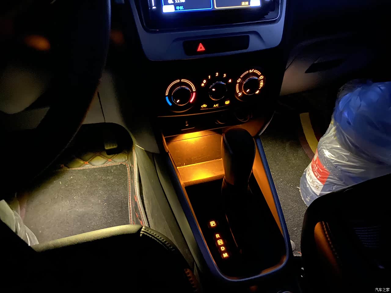 内饰做工粗糙,这个价位的车就不谈内饰了,能用就行了。自己升级了真皮坐椅和门皮包复,鲨鱼鳍天线和原装位氛围灯还有LED双光透镜大灯并加装透镜远光炮感觉和豪华版就差个自动空调了。