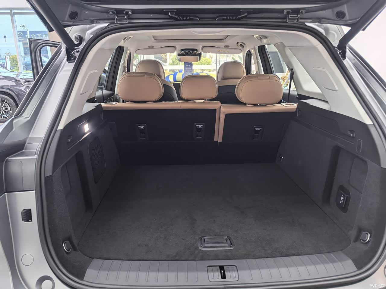 特意拍了这个车的后排空间,瑞虎8L的后备箱空间确实非常宽敞,设计也很实用。从图片中可以看出,后备箱内部平整,深度和宽度都很充足,能够轻松容纳大件行李或购物物品。座椅放倒后,空间进一步扩展,非常适合家庭出行或长途旅行。后排空间也是比较宽敞的,有电动调节按钮,靠背可以再向后面调节,空间上真的充足。