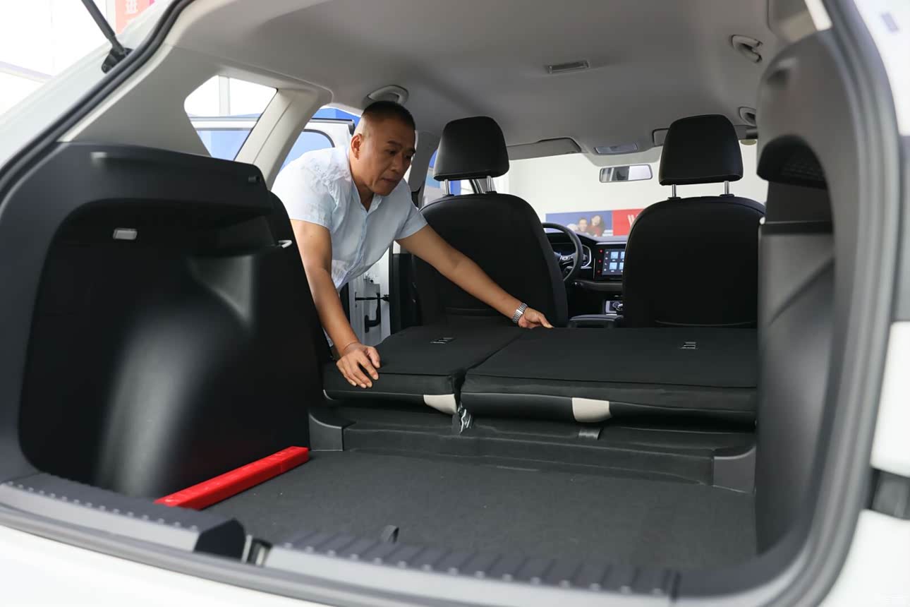后背厢很大,而且往下挖了一点深度,平时买菜备货很实用,开后备厢的时候,不会滚落瓜果,到旺季的时候,就算后背厢拉不下也可以把后排座椅放倒,空间特别大,大号的物流箱可以直接从后备箱推进去,快赶上面包车的空间了。