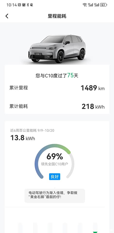 夏秋季90%健康充电续航大概430+,百公里能耗在13.8kwh