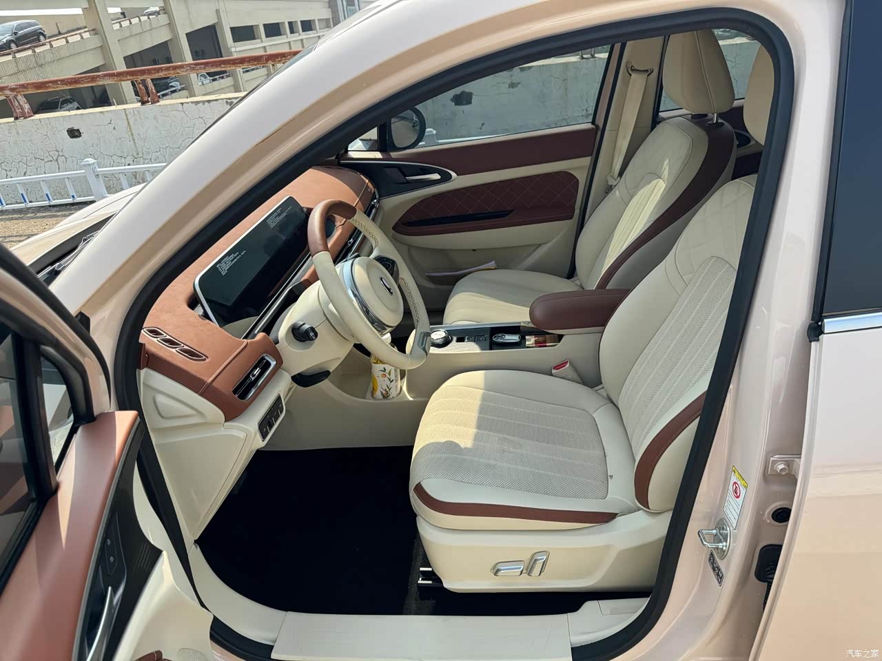 欧拉好猫的内饰设计简约又温馨,整个布局非常清新,看上去没有那么复杂,却很有格调。座椅是皮质的,坐上去很舒服,而且座椅加热功能在冬天特别实用,给我这种怕冷的女生带来了极大的舒适感。中控屏大而清晰,操作简单,我每次用导航或者调节音乐都特别方便。 让我惊喜的是它的小储物格设计特别贴心。比如中控台下方有个小空间,可以放我的随身包包或者化妆品。门板上还有几个储物槽,每次买奶茶都能稳稳地放在里面,不用担心开车时洒出来。