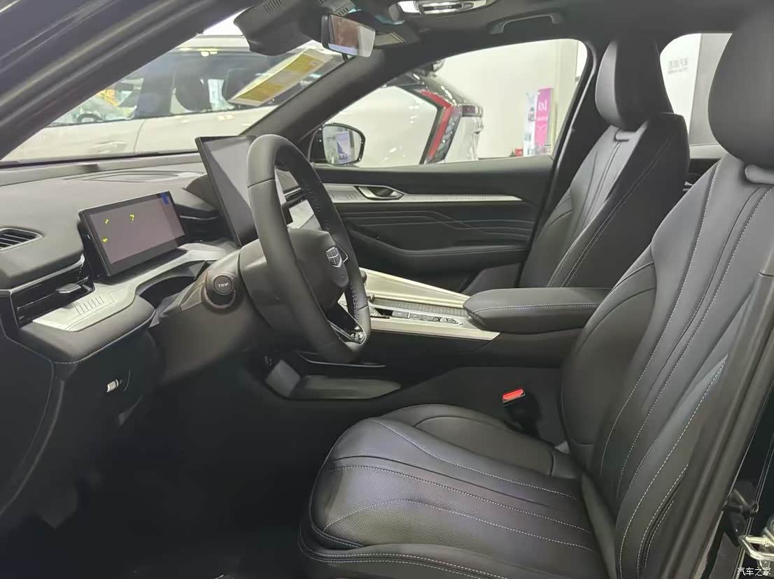 25款星瑞的内饰设计相当漂亮。整体设计是那种布局简洁的感觉,大尺寸的中控屏搭载的智能车机系统,操作起来非常顺滑,而且功能也特别多,无论是导航、音乐还是语音控制,试驾的时候给我的感觉都不错。听歌的时候音响的质感也可以,具体是啥音响我没问,但是确确实实比我家老合资车比出来了差别的感觉,此外,车内的皮革材质不知道是什么皮,反正感觉用料档次可以,手感非常不错,吉利这次挺下狠功夫的,给人一种豪华车的感觉