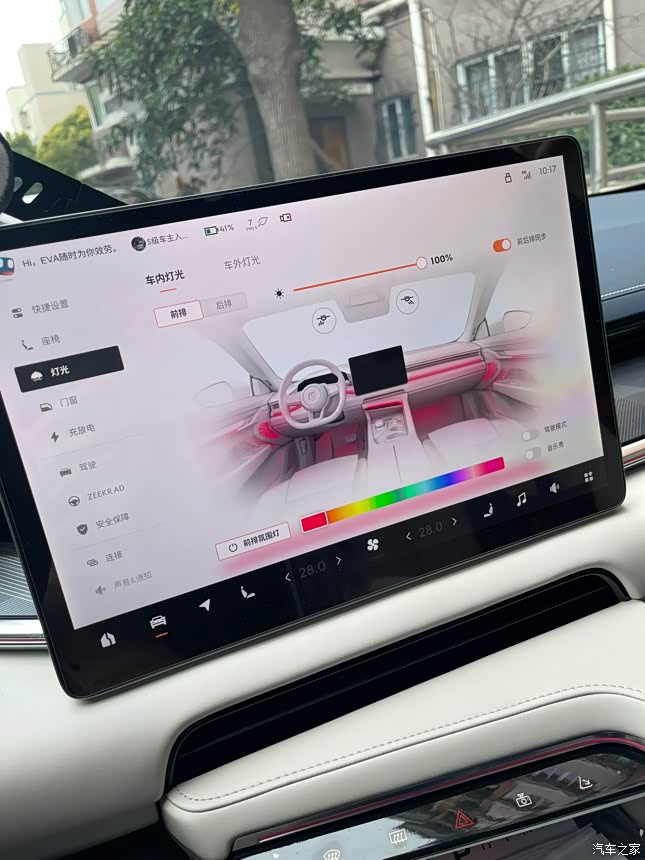 极氪001氛围灯有64种颜色,而且啊,这氛围灯的设计也是别具匠心。它采用隐藏灯带的光瀑式设计,在夜间行驶时,那种未来感十足的效果简直让人陶醉。灯光不仅美观,还能提升车内整体质感和豪华感,让你感觉就像是坐在一辆豪华轿车里一样。我拍的视频里,极氪001的氛围灯还能与音乐联动!没错,就是音乐秀氛围灯!当你播放快节奏的音乐时,氛围灯会疾速闪动。