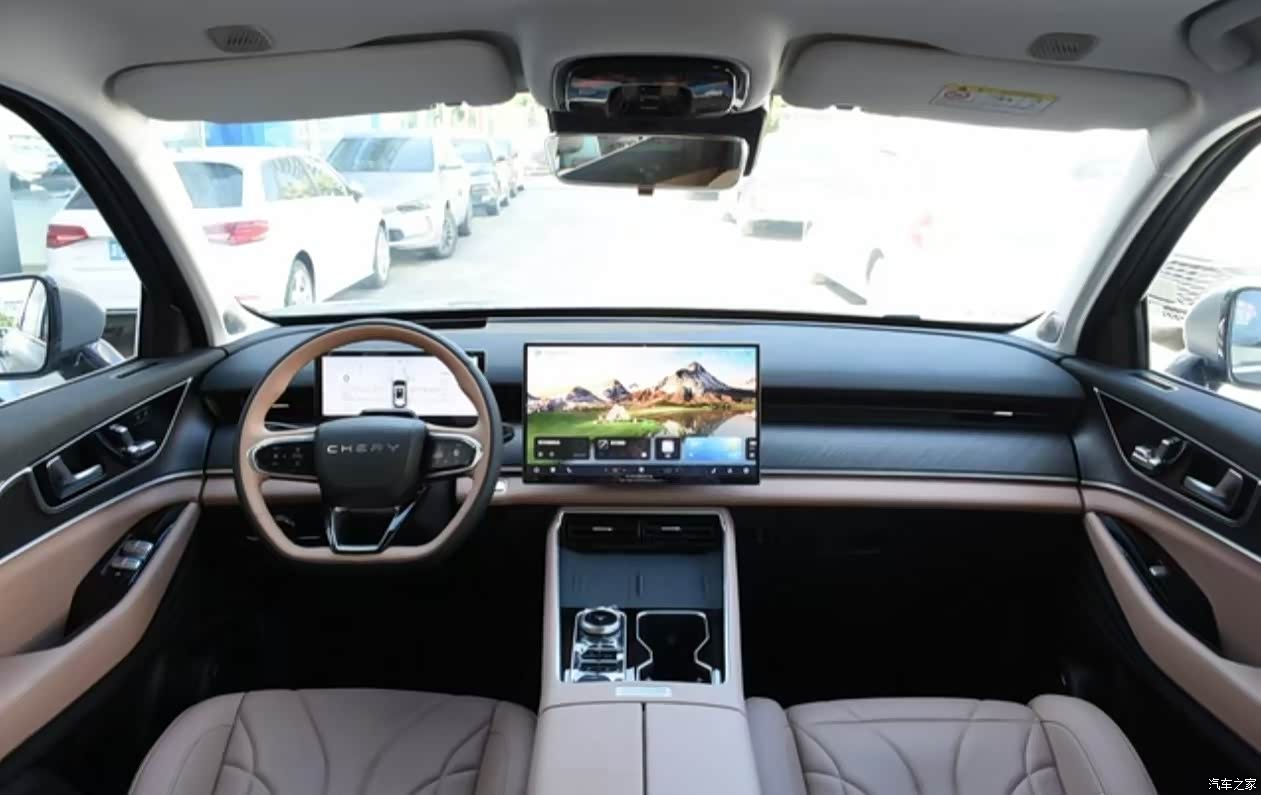 内饰方面,瑞虎8L采用了环绕式座舱设计,中控台简洁大方,用料讲究。大面积软性材质包裹和精细缝线处理,提升了触感与档次感。15.6英寸的中控屏与10.25英寸的全液晶仪表盘构成了车内主要的信息显示区域,界面设计直观易用。此外,车内还配备了多色氛围灯、索尼音响系统等高端配置,为乘客创造了一个温馨舒适的乘车环境。