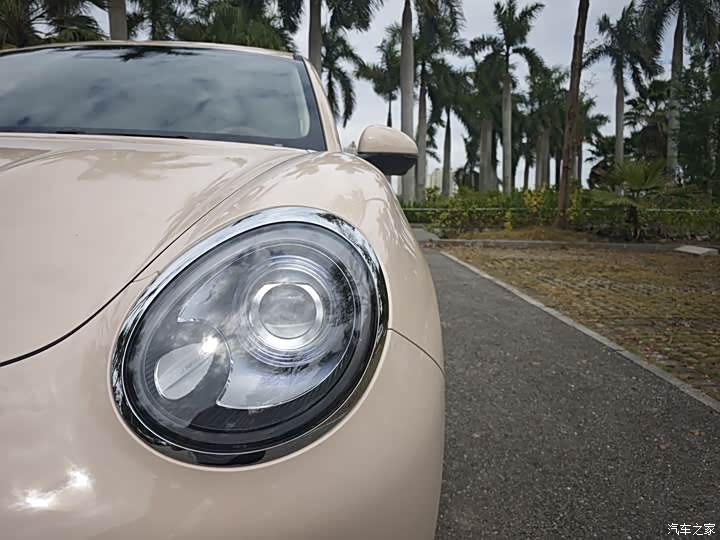 外观是我选择好猫的重要原因之一。我个人非常喜欢它的复古造型,那种圆润的车灯和略显夸张的大灯造型,很有60、70年代经典小车的味道。尤其是前脸部分,两个大灯像猫眼一样灵动,再加上前面格栅位置的镀铬装饰,整个车头非常可爱又有性格。